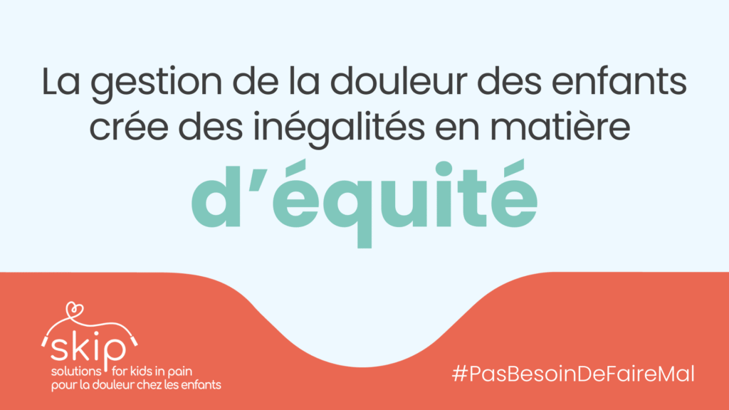 Participez au mouvement visant à réduire les inégalités en matière de douleur chez les enfants! Ensemble, nous pouvons faire de la douleur des enfants une priorité et leur offrir les soins qu’ils méritent. Passez à l’action à l’aide de ces ressources de SKIP: https://kidsinpain.ca/fr/help-close-the-gap-for-kids-in-pain/